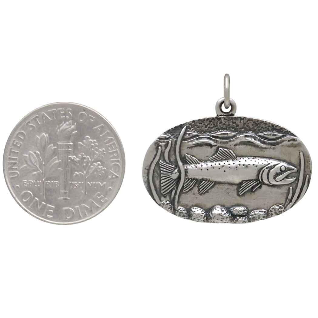Sterling Silver Trout in Stream Pendant 22x25mm