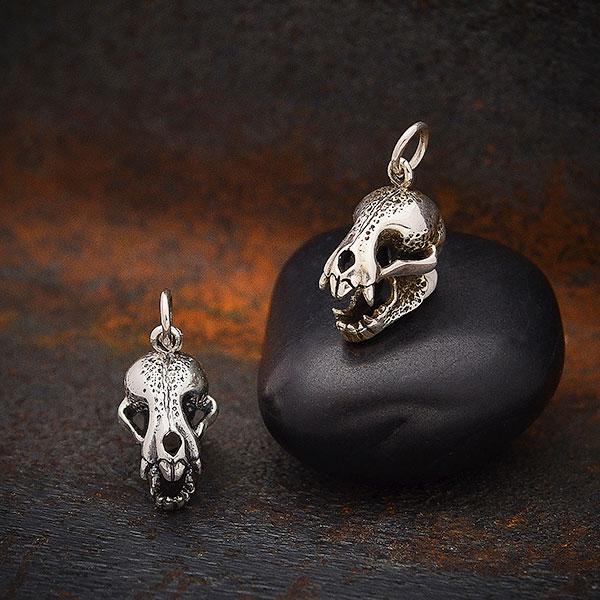 With its pronounced fangs, strong jawline, and large eye sockets, this sterling silver vampire bat skull charm is a potent talisman. Wear this bat skull charm to channel your powers of communication, transformation, and resilience. This talisman bat charm will help you move between worlds, navigate your dark times, and release fears that stifle growth. Have confidence and trust your senses.