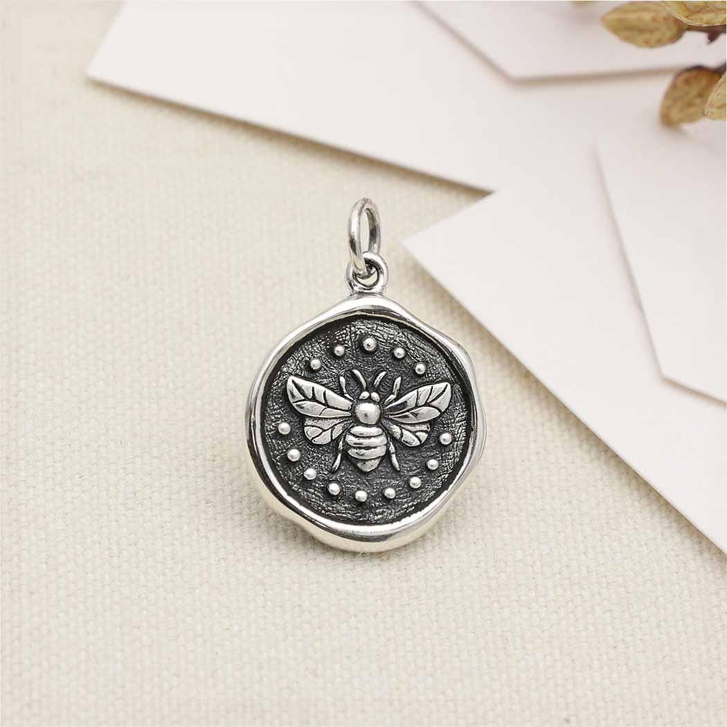 This sterling silver wax seal bee charm sparks joy and confidence. Bees are industrious, social, and confident. Every bee in every colony plays a vital role in their group, no matter how big or how small, making this wax seal charm perfect for school clubs, bands of besties, and church groups. Stock up on these bee charms for the summer season, and Earth Day. If you run an Eco-conscious jewelry shop this wax seal bee charm is just the pick. Find more Wax seal Charms to add to your mix.