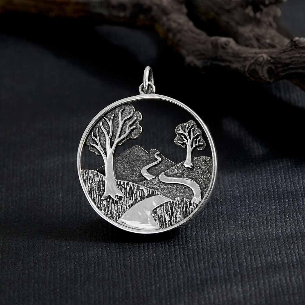 This sterling silver winding path pendant is all about potential, determination, and your next big adventure. Looking at this charm, you think where will I go next? The thrill comes from starting something new, but high acheivers will tell you it's getting through the middle that's the toughest part, yet so worth it when you reach your goal.