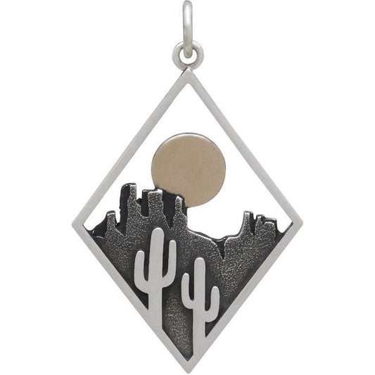 Sterling Silver Cactus Charm in Diamond Frame 33x20mm