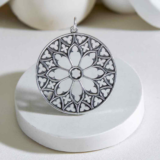 Sterling Silver Cathedral Rose Window Pendant 36x30mm