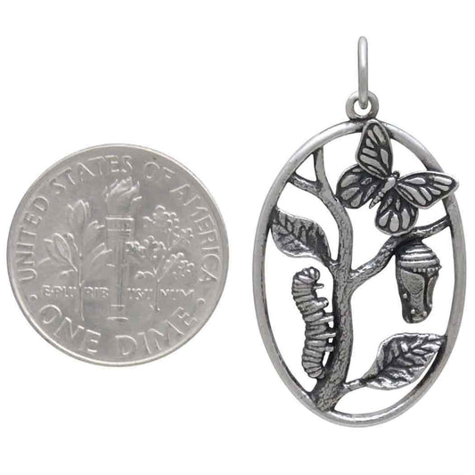 Sterling Silver Butterfly Metamorphosis Pendant 32x18mm