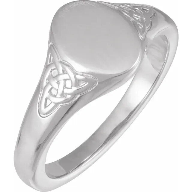 Engravable Oval Celtic-Inspired Signet Ring available in Sterling Silver or 14k Gold