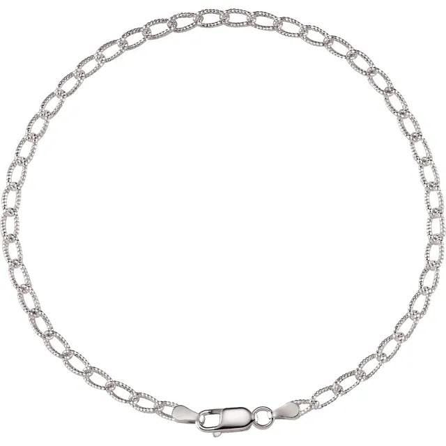 Add your favorite charm to this stylish, solid Sterling Silver chain and wear it as an anklet or bracelet. The highly polished, textured curb chain has a secure lobster clasp.
